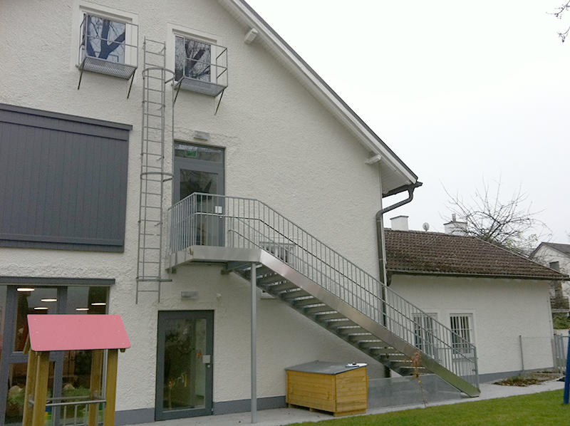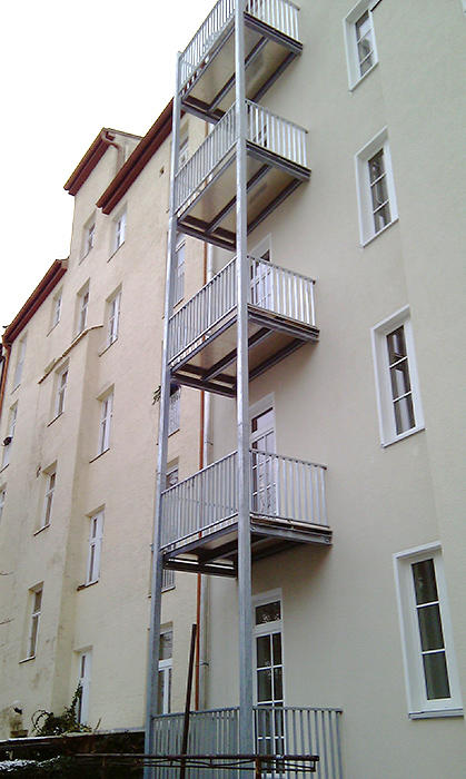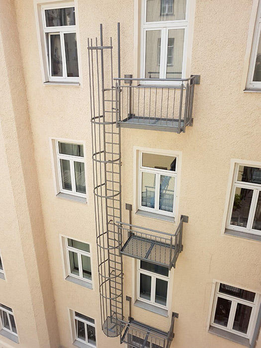 Fluchtleiteranlagen nach DIN EN 14094 auf Wunsch mit prüffähiger Statik und an jede Gebäudesituation angepasst.