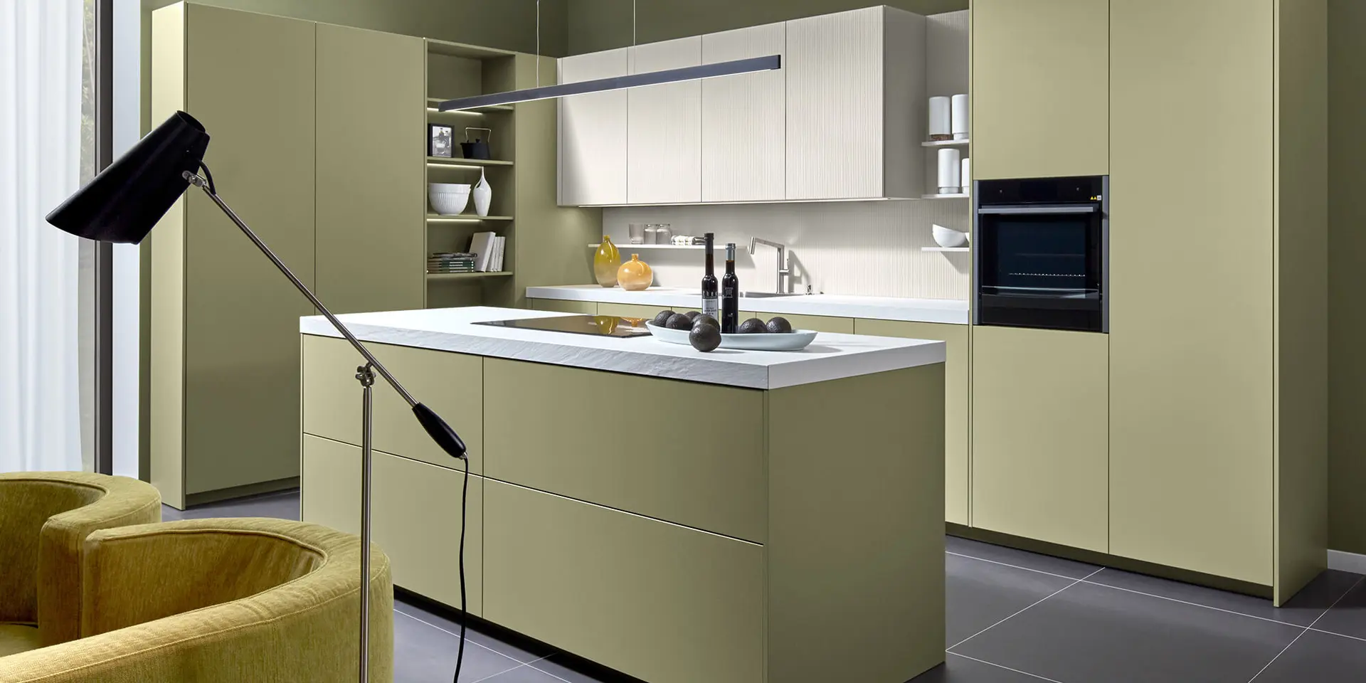 Harmonie und Eleganz Die ASMO TU Jadegrün Küche ultramatt präsentiert sich als eine Meisterleistung an Stil und Eleganz, wobei das zarte Jadegrün die Hauptrolle in dieser künstlerischen Inszenierung spielt. Die Küche ist nicht nur ein funktionaler Raum, sondern ein ästhetisches Statement, das mit raffinierten Akzenten und einer harmonischen Kombination überzeugt. Die 3D-Optik der Küche ist eine wahre Augenweide, die je nach Lichteinfall ein faszinierendes Wechselspiel aus Licht und Schatten entfaltet. Das zarte Jadegrün, das die Hauptfarbe der Küche bildet, verleiht dem Raum eine ruhige und gleichzeitig erfrischende Atmosphäre. Es ist eine Farbnuance, die Eleganz und Modernität miteinander verbindet, und gleichzeitig eine zeitlose Schönheit ausstrahlt. Ein besonderes Highlight dieser Küche ist die exquisite Rillenfront, die dem Jadegrün einen aufregenden Begleiter zur Seite stellt. Diese Rillenfront verleiht der Küche nicht nur eine texturierte Oberfläche, sondern schafft auch eine taktile Erfahrung, die das ästhetische Erlebnis noch intensiviert. Die feinen Rillen tragen dazu bei, dass die 3D-Optik in ihrer ganzen Pracht zur Geltung kommt und somit ein beeindruckendes visuelles Erlebnis schafft. Das grifflose Erscheinungsbild der ASMO TU Jadegrün Küche ultramatt ist nicht nur modern, sondern unterstreicht auch die großzügige Gesamtwirkung der Küche. Die klaren Linien und die schlichte Grifffreiheit tragen dazu bei, dass der Raum luftig und geräumig wirkt. Dies ist besonders in modernen Wohnkonzepten von Vorteil, in denen offene Grundrisse und eine nahtlose Verbindung zwischen Küche und Wohnbereich immer beliebter werden. Die sorgfältige Auswahl der Materialien und die präzise Verarbeitung tragen dazu bei, dass die ASMO TU Jadegrün Küche ultramatt nicht nur ästhetisch beeindruckt, sondern auch funktional überzeugt. Hochwertige Materialien sorgen für Langlebigkeit und Widerstandsfähigkeit gegenüber täglichem Gebrauch, während die durchdachte Anordnung der Elemente die Arbeitsabläufe in der Küche optimiert. Zusammenfassend präsentiert sich die ASMO TU Jadegrün Küche ultramatt als eine meisterhafte Komposition von Farben, Texturen und Funktionalität. Diese Küche schafft nicht nur einen Raum zum Kochen, sondern ein harmonisches Gesamtkunstwerk, das den Lebensstil seiner Besitzer stilvoll unterstreicht. Mit ihrer zeitlosen Eleganz wird diese Küche sicherlich auch in den kommenden Jahren ein zeitgemäßes und ästhetisches Zentrum des Hauses bleiben.
