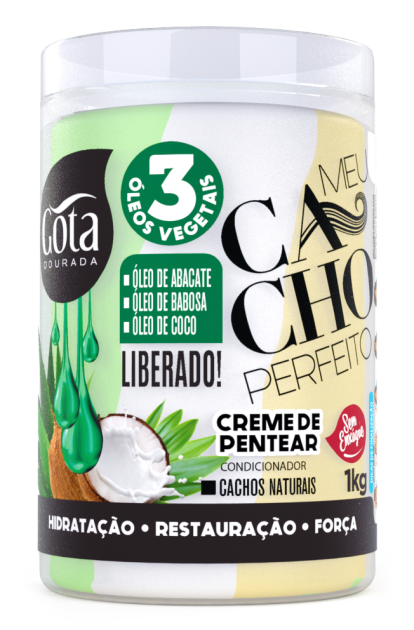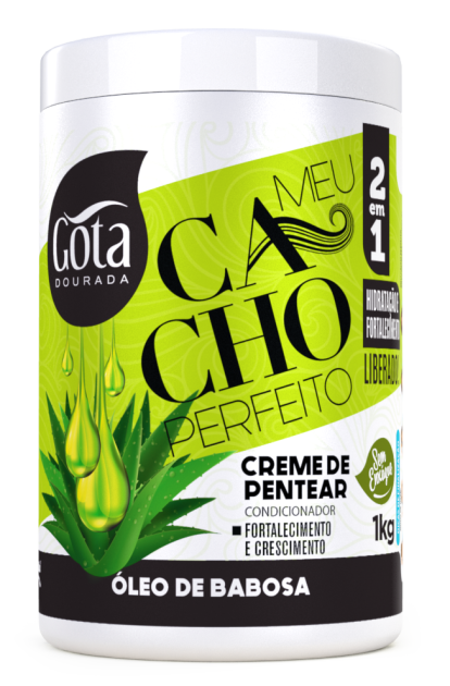 Stylingcreme zur Feuchtigkeitsversorgung und Stärkung. Mit Aloe Vera Oil gewinnt es die Festigkeit von zerbrechlichem und trockenem Haar zurück, repariert die Fasern und die tiefsten Schichten des Haares und spendet Feuchtigkeit und macht die Locken weich. Dank Aloe Vera: Pflegt und repariert beschädigte Strähnen und erreicht Zellerneuerung. Stärkt das Haar durch Bekämpfung von Haarausfall. -------------------- Com Óleo de Babosa recupera a força dos cabelos fragilizados e ressecados, reparando as fibras e as camadas mais profunda dos fios, além de hidratar e suavizar seus cachos.A acão restauradora da babosa é conhecida e utilizada por ser um dos ativos naturais mais potentes e fortalecedores para os cabelos. Fique ainda mais linda com a linha Meu Cacho Perfeito Gota Dourada.