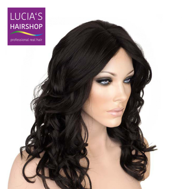 Echthaarperücke schwarz lockig mittellang Nach Vorbestellung, längere Lieferzeit.