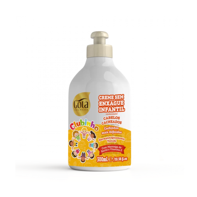 Gota Dourada Clubinho Cachados Kämmen Creme. Die Kinderlinie Clubinho für lockiges Haar enthält Sheabutter, einen natürlichen Feuchtigkeitsspender, der die Locken definiert, und Vitamin E, ein Antioxidans, das die Kopfhaut schützt und die Drähte stärkt. Die neue Formel wurde speziell für die Pflege von Kinderhaar entwickelt. Die Wirkstoffe Calendula und Baumwolle schützen die Kopfhaut, reinigen das Haar sanft und machen es superweich. ----------------- Gota Dourada Creme Pentear Clubinho Cacheados. Linha infantil Clubinho cabelos cacheados com Manteiga de Karité que é um hidratante natural, que ajuda a definir os cachinhos e Vitamina E que é um antioxidante que protege o couro cabeludo e fortalece os fios. A nova fórmula feita para cuidar especialmente dos cabelinhos das crianças. Com Calêndula e Algodão que são princípios ativos que protegem o couro cabeludo, limpam os fios com suavidade e os deixam super macios.