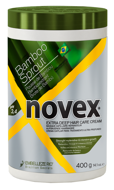 Embelleze Novex Bamboo Sprout Pflegecreme für leichteres Kämmen Bambus ist reich an Nährstoffen, angereichert mit Aminosäuren, Mineralien und den Vitaminen A, B und C fördert es das Haarwachstum, regeneriert und strukturiert die Haarfaser und beseitigt Spliss und krauses Haar. Empfohlen für schwaches und dünnes Haar.