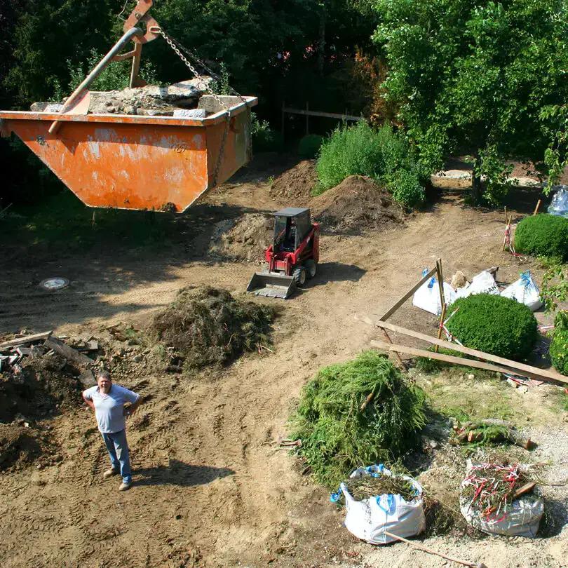Wir führen Erd- und Baggerarbeiten für kleine und große, private und kleinere gewerbliche Objekte aus. Dabei arbeiten wir hauptsächlich mit unseren eigenen Maschinen. Spezialgeräte werden bei Bedarf dazu gemietet. Unsere Geräte sind klein und wendig und dennoch leistungsfähig. Daher sind wir auch in der Lage in bereits angelegten Gärten zu arbeiten oder in schwer zugänglichen Bereichen tätig zu werden. Besonders gute Dienste erweisen uns unsere Bodenschutzplatten, die den Rasen und die Plattenbeläge schützen, wenn wir im Bestand arbeiten müssen. Dank unserem großen Zeltdach können wir auch bei schlechter Witterung arbeiten. Mit unserem LKW liefern wir Material und fahren Aushub ab. Wenn große Mengen bewegt werden müssen, arbeiten wir mit unseren zuverlässigen Lieferanten zusammen.